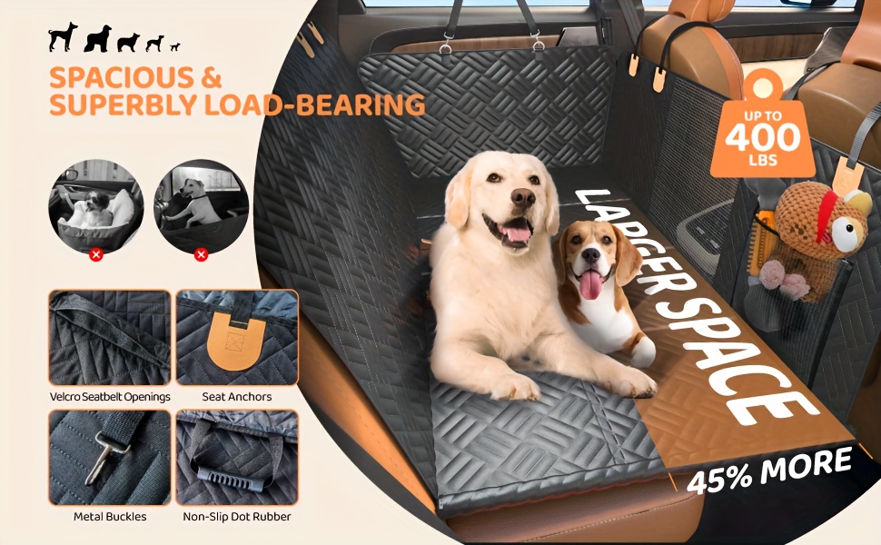 The dog car seat cover with a hard bottom is constructed from six layers of durable, wear-resistant material and a high-density fiberboard. It is , tear-resistant, and non-slip, making it easy to clean. This cover fully shields your back seats and doors, offering complete protection for your vehicle against scratches and dirt.