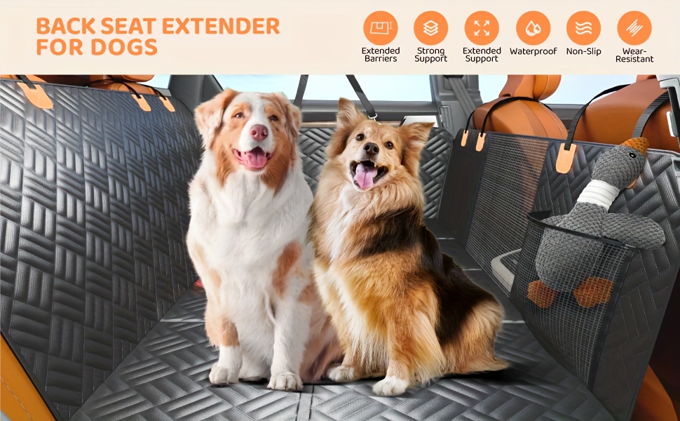 The dog car seat cover featuring a sturdy base transforms the backseat into a cozy car bed. It offers full coverage of the rear space. This back seat extender gives your dogs ample room, making it ideal for all breeds, ensuring they can comfortably rest and lie down during long journeys.
